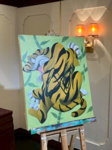 今回のイベントの目玉は、ガーデングローブ合同会社のJUNK–Rによる「ライブペイント」 110周年を機に新設した「新しいロゴマーク」を、モチーフに描き上げてもいました。
